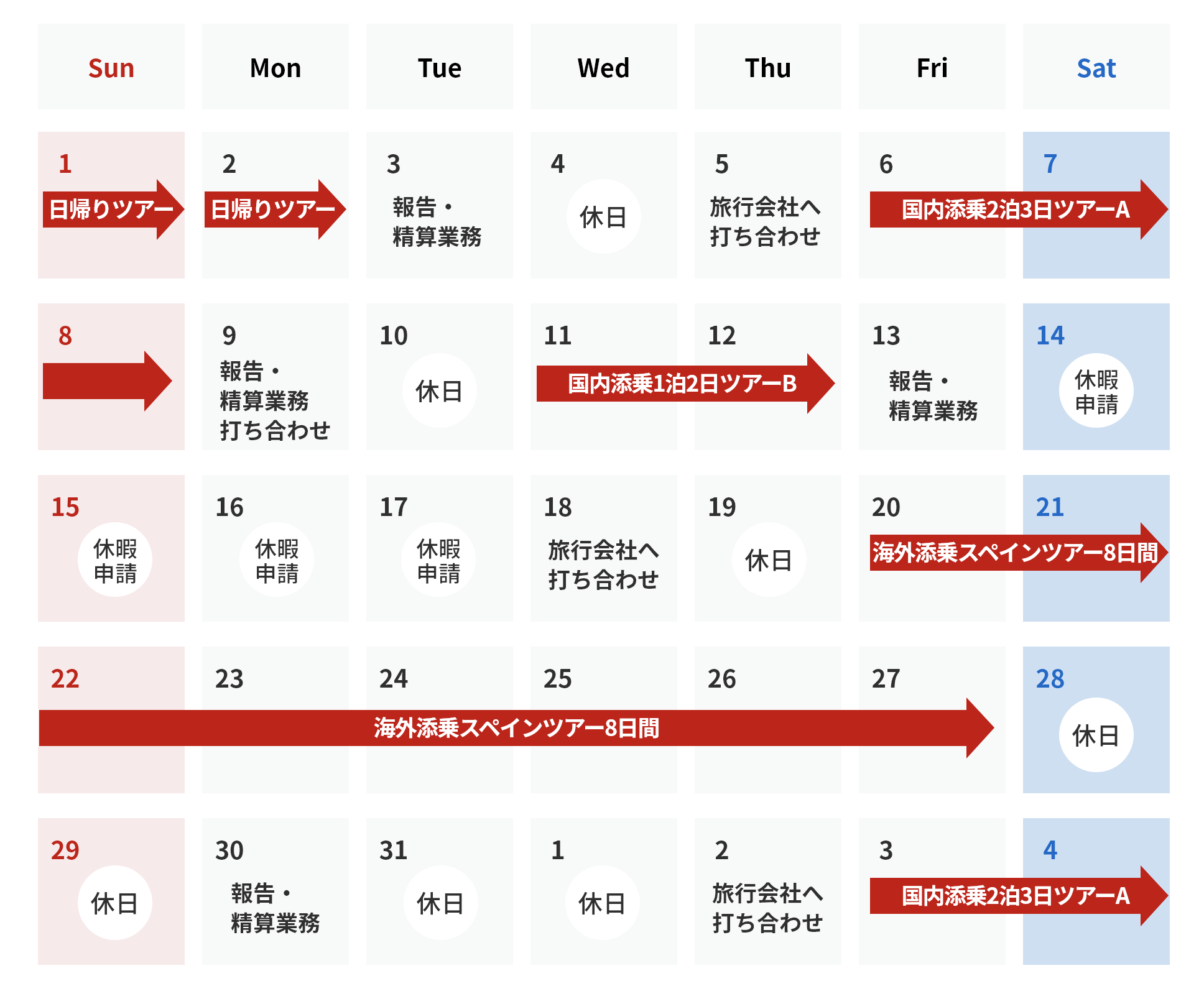 ツアーコンダクターのスケジュール